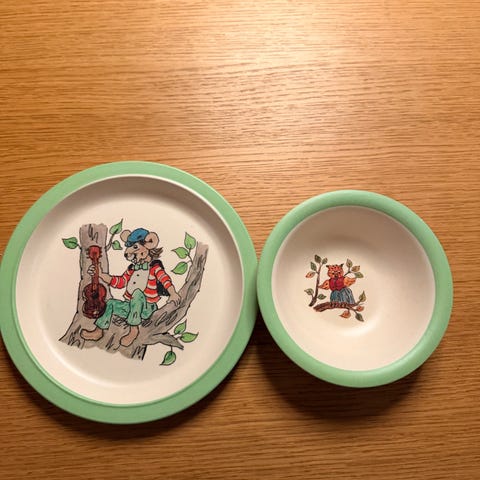 Liten lyseblå firkantet skål. Samme blåfarge som blå Sissel og passer fint med det serviset.