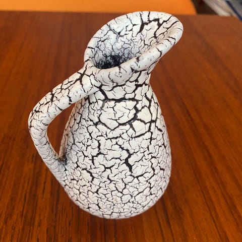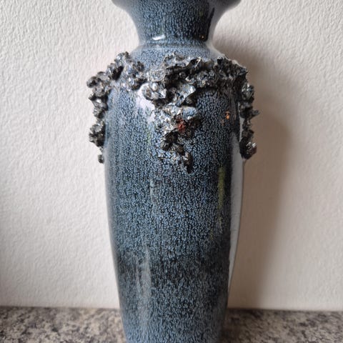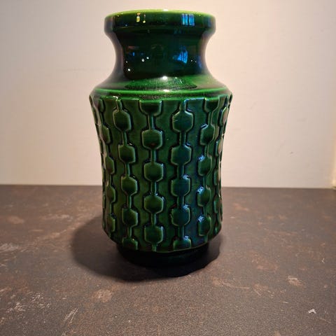 Vintage/retro vase - «fat lava» keramikk. Trolig tysk - W. Germany. I fin stand, men med en liten avskalling på kanten, se bilde.