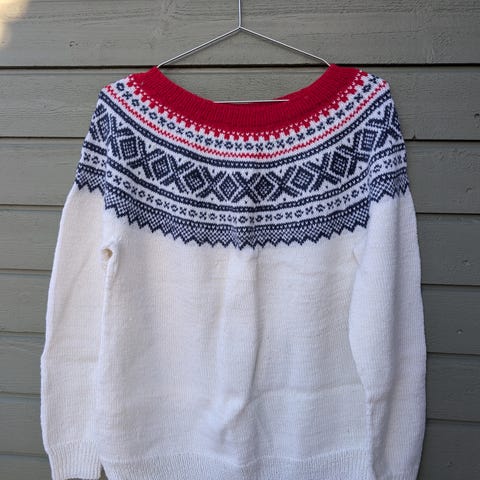 # Strikkegenser, hjemmestrikk, ullklær, Norgesmønster, Mariusstrikk, tradisjonell strikkegenser, knitted sweater, wool sweater, julegave,