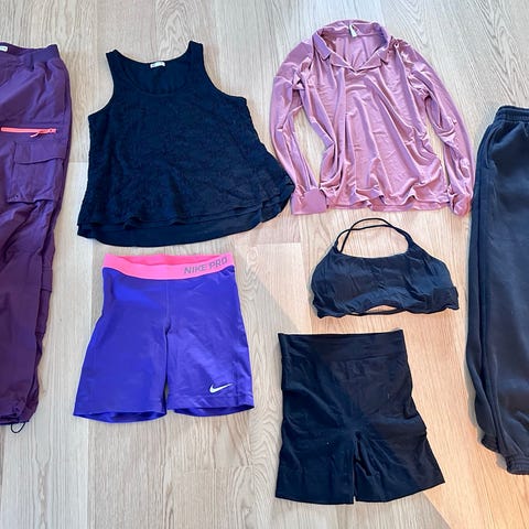 Klespakke til dame i størrelse M. Nike t-skjorte, og joggebukse (3/4 lengde).