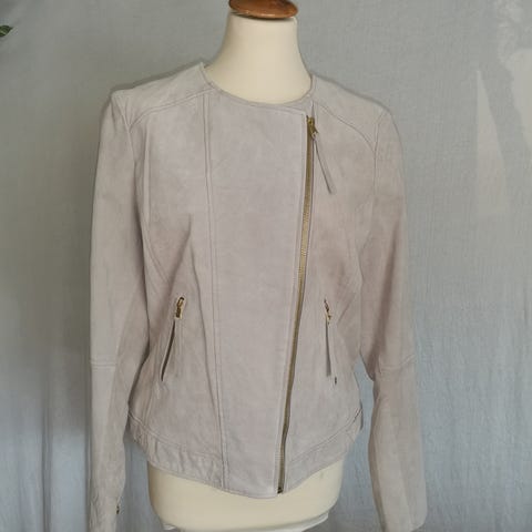 VA VITE jakke og omslagsskjørt i semsket skinn str M/40
