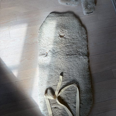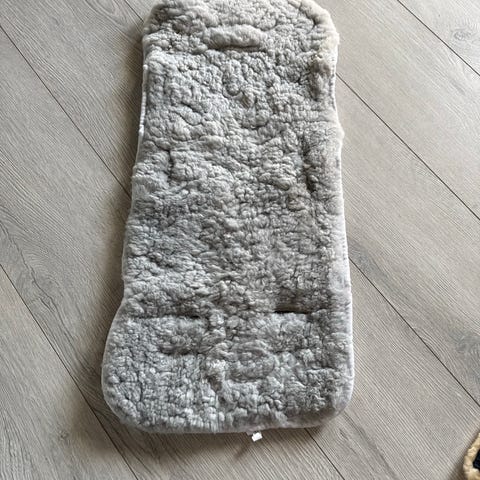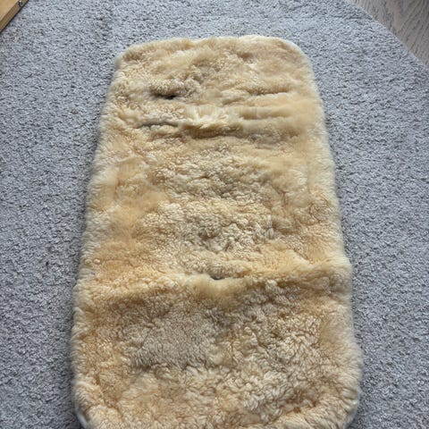 Mykt og varmt korthåret saueskinn fra Nøstebarn selges. Skinnet kan brukes i vogn eller bilstol.