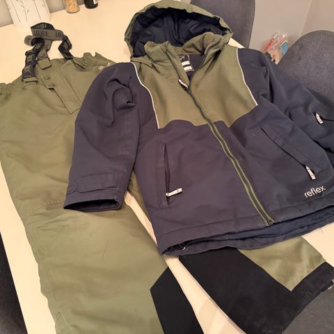 Vinterjakke str 110 og bukse str 104 fra Vikafjell. Noe flekker