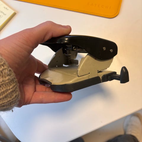 Kraftig hullemaskin for enkelt å hulle en litt tykk papirbunke