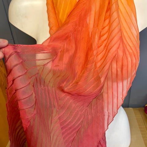 Orange skjerf, flott farge, i tynt gas stoff. Ca 2 meter