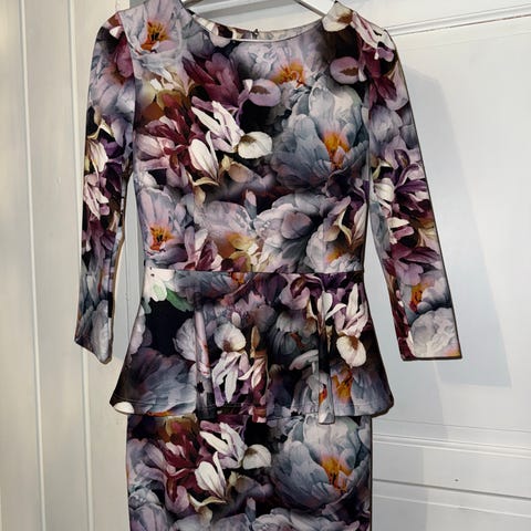Nydelig kjole med vakre farger og med sydd på Blazer. Gir en veldig elegant look. Perfekt hvis du bruker belte også. Som helt!
