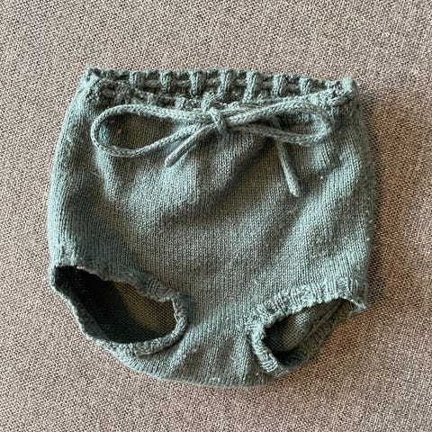 Nydelig på og flott blågrønn farge. Ullromper som gikk på her frem til nesten året. Bittelitt nupper.