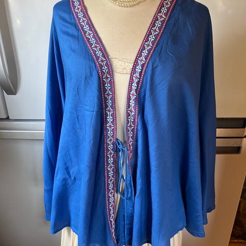 »HVIT/BLÅ/ORANGE BLOMSTRET BLUSE», STR. 44