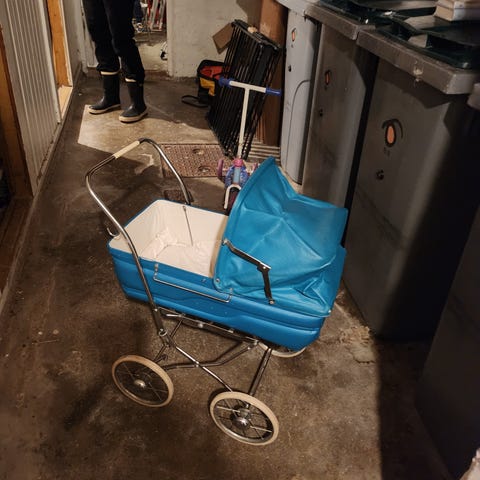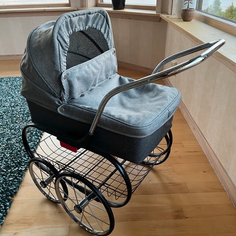 Koselig gammel dukkevogn selges. Den har gode fjærer og er lett å trille. Må hentes av kjøper.