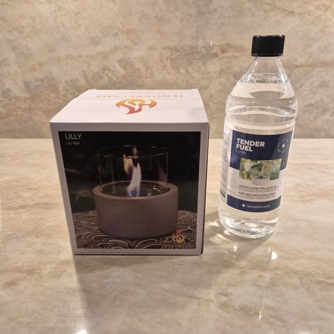 TenderFlame forurenser ikke og er så trygg at du kan fylle på mens lyset ditt eller peisen brenner.