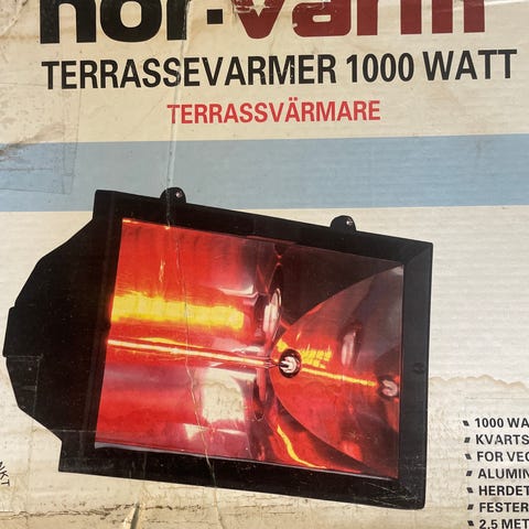 NY Sølvgrå MATRIX Terrassevarmer 1500W med Fjernkontroll med 6 nivåer og integrert timer selges. Esken er ikke åpnet. Nypris 4 695,-