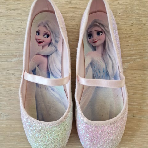 Selger et par glitrende ballerinasko med Care Bears motiv i str.34.