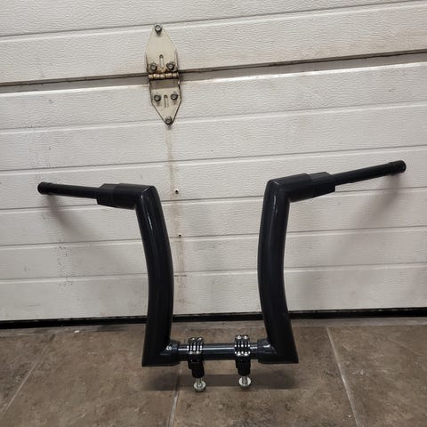 WILD1, CHUBBY HOOKED 1-1/4" APE HANGERS. 12" RISE. BLACK fra Motorcycle Storehouse ferdig pre-wired med ledninger og klart for plug & play montering.