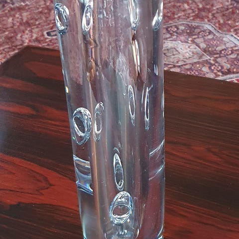 Tung og fin fra glassmagasin, blomster vase