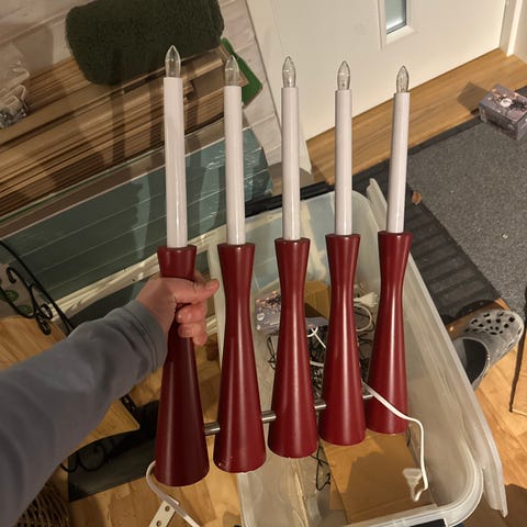 Enkel og fin lysestake gis bort da den ikke passer inn i nytt hus. Ca 32 cm