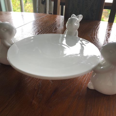 Ca 16 cm i diameter og 7,5 cm høy. En fin grønnfarge. Passer perfekt til påske!