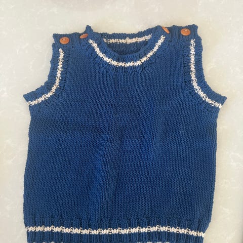 Flott hjemmestrikka vest i ull. Strikket i kløfritt garn. 2-4år.