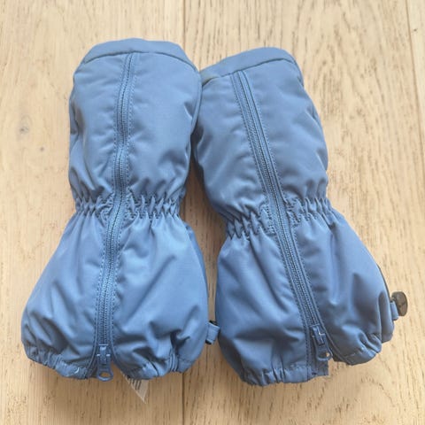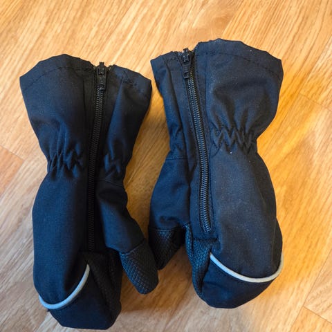 Skallvotter str 6-12 mdr. Brukt bare 2 gange. Veldig kjekke med borrelås rundt håndledd.