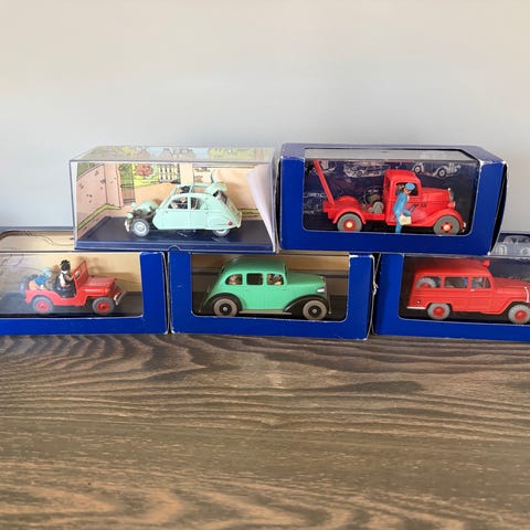 4 uåpne vintage Tintin Atlas biler - nr. 2, 5, 18 og 62