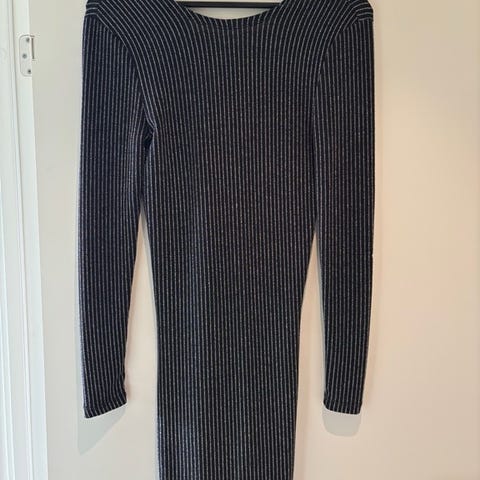 Svartmelert svart og hvit figurnær ribbestrikket kjole i str. S fra Bik Bok 🖤🤍🩶 Tror ikke at den er brukt, men velger pent brukt just in case. Den er ribbestrikket og har god stretch. Former seg fint etter kroppen - tettsittende 😊 Se lappen med materialinfo og bilder med mål:) Modellen heter KP Ruby.