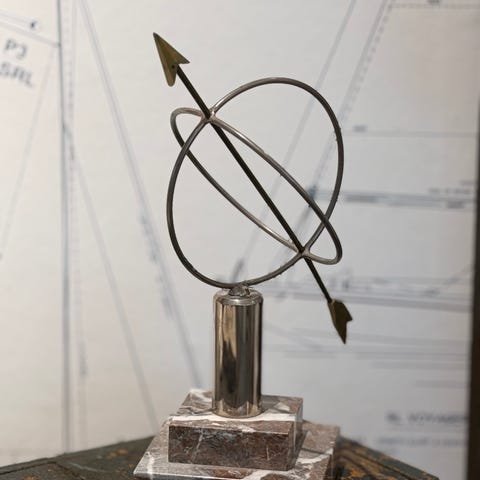 Gammelt skrivebordsett, mest sannsynlig i marmor (tungt). Blekkhus med plast innlegg, signetstempel med initialene BC, trekkpapirrulle med nesten nytt trekkpapir. NB pennen følger ikke med. Kan overleveres på strekningen Rjukan-Asker-Tofte.