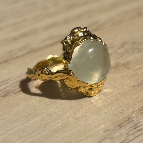 Selger denne nydelige gudinne ringen fra maanesten da den ikke blir brukt! Ringen er laget av 925 sølv og er gullbelagt med 18 karat indisk gull oppå! Ringen har en Nypris på 1200kr💌