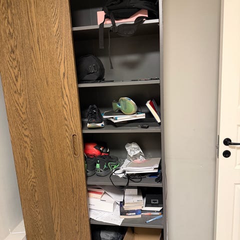 KUN 1 IGJEN: Garderobeskap, stålskap i god stand selges billig.