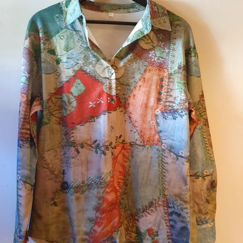 Den er uten tags men ser ut som størrelse L , og jeg typer det er bomull.