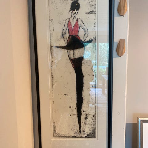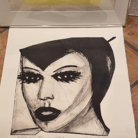 Selger 1 stk bilde av Dagfinn Knudsen (koldnål). Svart ramme (b 4 cm) og svart passepartout. (Se mål på bilde).