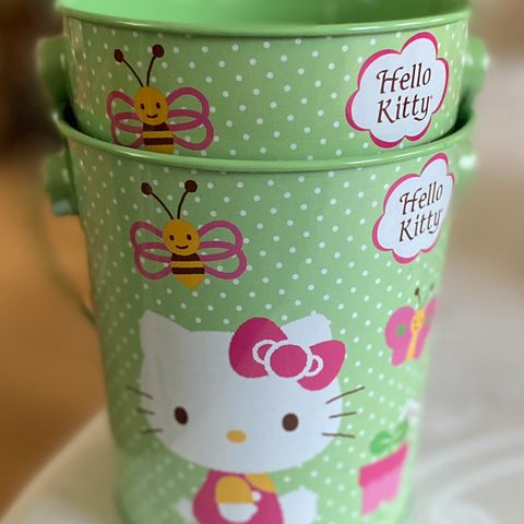 4 grønne Hello Kitty bøtter spann vår sommer selskap Sanrio godter