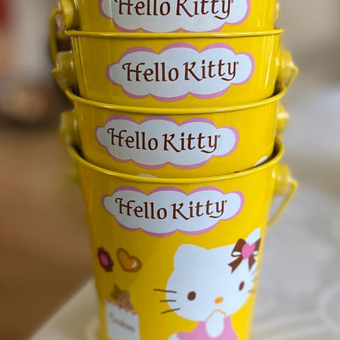 2 grønne Hello Kitty bøtter spann vår sommer selskap Sanrio godter