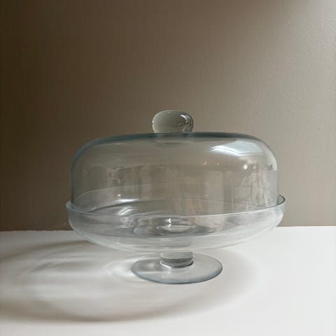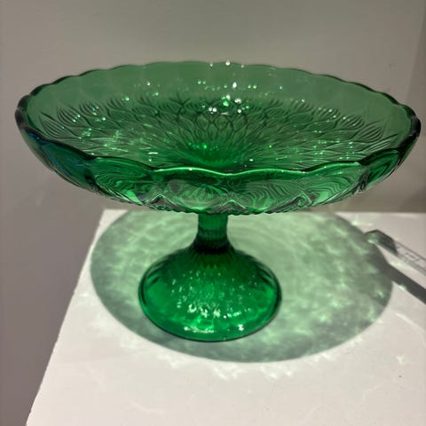 Selger et fint grønt kakefat i presset glass, 28 cm.