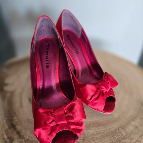Hæler i fra Tamaris. Brukt 1 gang i bryllup. Har noen merker på seg etter at eg har gått i grus med de.