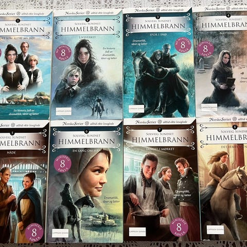 Totalt 15 bind. Bøkene er uleste og fremstår som nye.