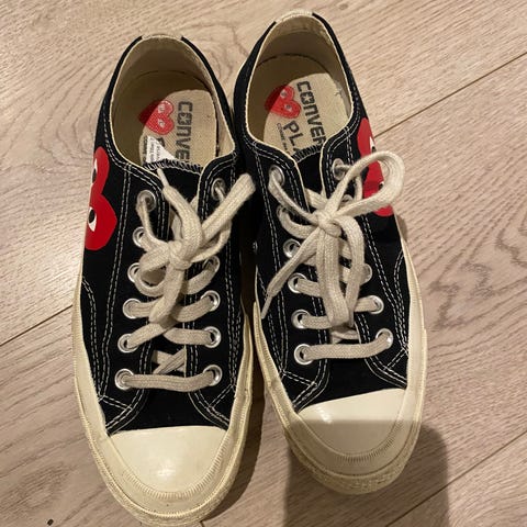 Selger disse pent brukte commes des garcons conversene i str 41,5 pga bruker de ikke mer. Ingen slitasjer eller bruksmerker på de😃