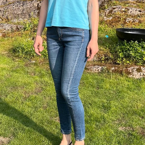 Rett modell, bomull og elastan. Lite brukt