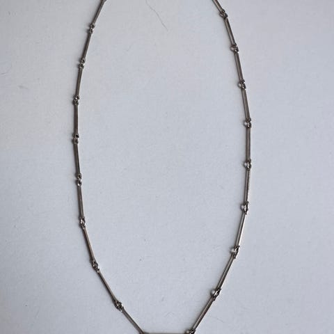 Armbånd fra Gale fra rundt 1950. Art Nouveau stil med rhinstener. Det er rhodium belagt. Usikker på om det er sølv under. Lagt ved et bilde lånt fra nett med likt armbånd priset til 105 dollar. Alle stener er på plass, og ingen slitasje på rhodiumet, bortsett fra akkurat låsen som går inn i låsekassen. Det har en solid lås, og i tillegg en sikkerhetslenke med egen lås. Det er ikke så langt, kun ca 17 cm.