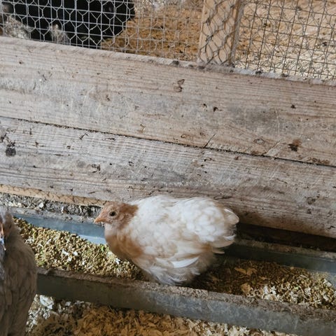 Kyllinger av brune høner, blanding av store raser som Bielefelder, gul Orpington, Wyandotte men mest de to første rasene. 10 kyllinger født 27-28. mars.