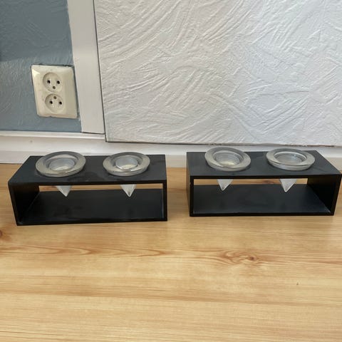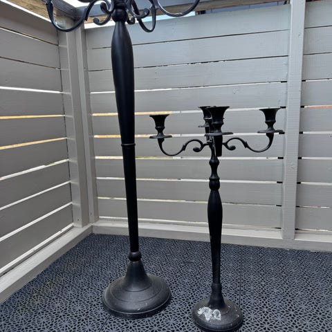 Lysestaker i lys eik. Fine å beise hvis en vil det.