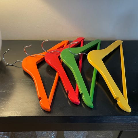 12 Gamle tre kleshengere fra div nedlagte butikker i Oslo. Alle er hele og kan brukes. Må Hentes på Nordstrand i Oslo. Sendes ikke.