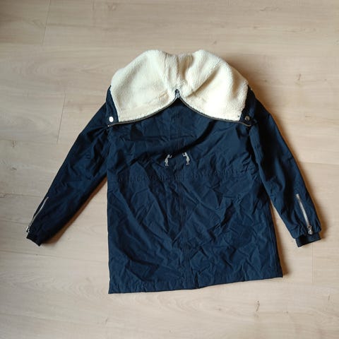 Hel og fin varm jakke selges. Grå med fint rosa innside.