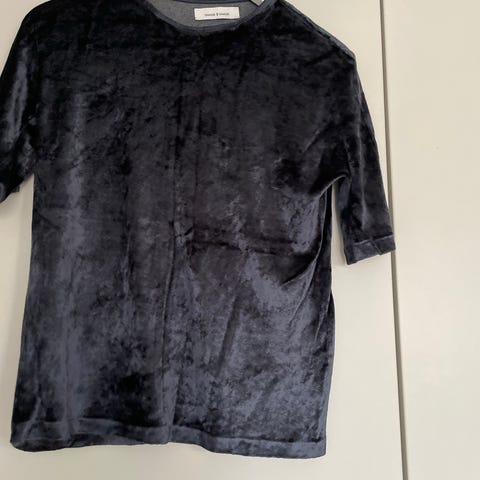 Nyderlig dyp blåfarge med glitterefekt i stoffet, fløyelaktig