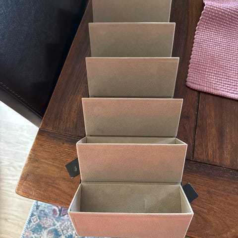 Liten koffert, stoff, tremateriale.