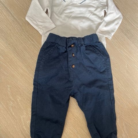 Fin lyseblå body fra salto i str 50/56 og mørkeblå myk finbukse/ dressbukse fra benetton i str 56