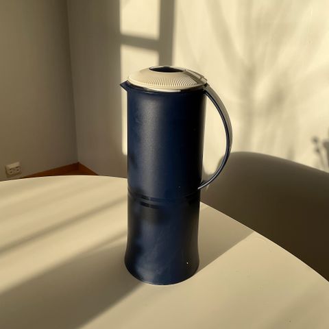 Den blå koppen har en liten brist ved hanken, se foto.