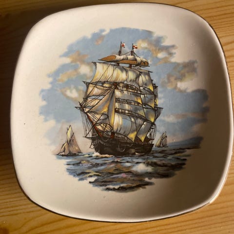 Vintage Copenhagen Denmark Lyngby skål med seilskip