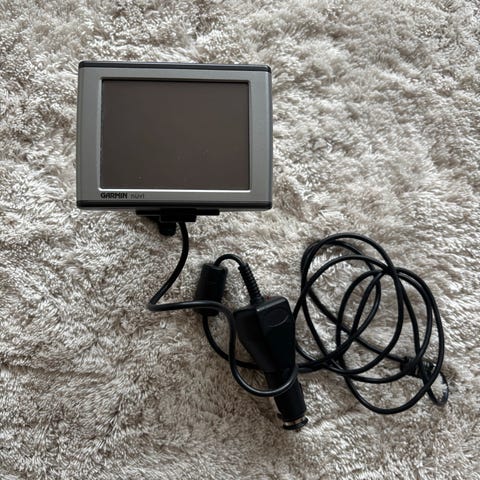 Jeg har hatt denne siden jeg kjøpte den som ny. Den har ikke vært i bruk på noen år. Den lader greit, men finner ikke satellitt. Derfor har jeg forsøkt å nullstille den, men får det ikke til. (Har dårlig teknisk innsikt). Der følger med ladeledning og etui