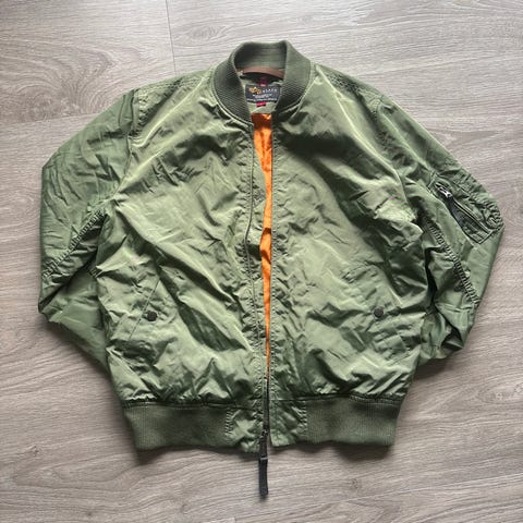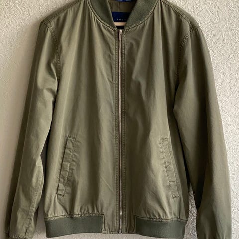 Lite og ubetydelig brukt pilotjakke med trykk på ryggen.
