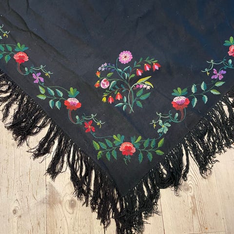 Håndvevd Ullsjal 114x114 ca. frynser i tillegg, nytt. (Pris Husfliden 3100,-)