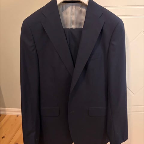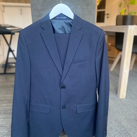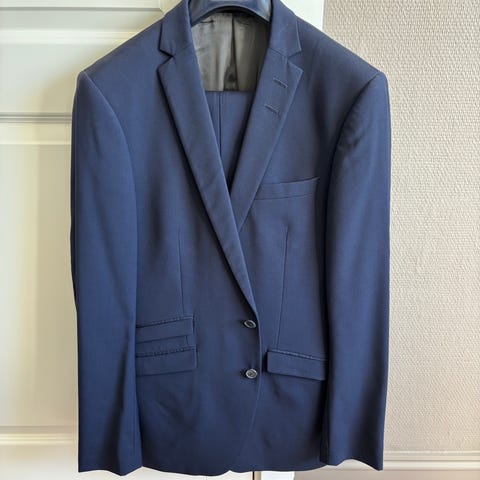 Svært pent brukt mørkblå dress fra Dressmann i behagelig ullstretch.